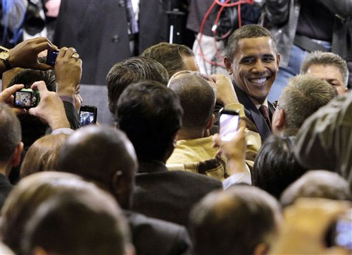 President Barack Obama shakes hands with the audience after delivering remarks at the General Electric plant in Schenectady, N.Y., Friday, Jan. 21, 2011. Obama traveled to the birthplace of the General Electric Co., to showcase a new GE deal with India and announce a restructured presidential advisory board to focus on increasing employment and competitiveness.